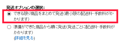 このように発送のオプションを使用してなるべく1つにまとめるようにすると、1回で受け取れるようになります。