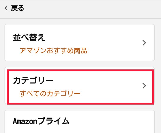 スマホの場合は、Amazonの検索結果の画面に絞り込みメニューが表示されますので、それを利用します。