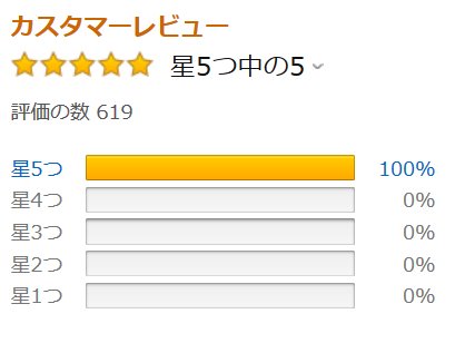 たとえば下の事例1では、619件のレビューが集まっているのですが、すべての人が星5つをつけています。619人もの人がレビューを書いているのに、星4つの評価さえないというのはおかしいです。筆者の感想としては「超怪しい」です。筆者ならこの製品は購入しません。