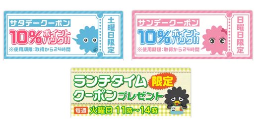 土曜日や日曜日、ランチタイムにもらえるクーポンなどがある